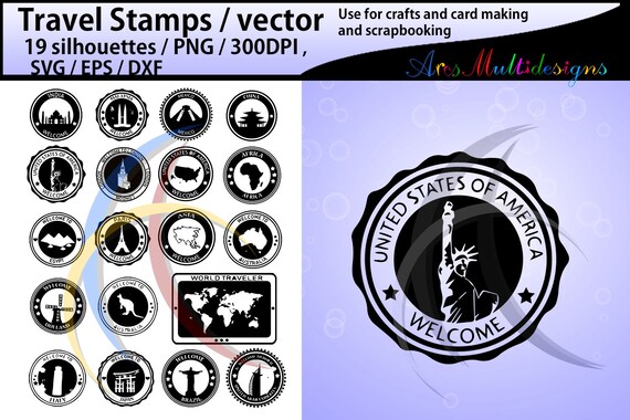 Travel Stamps Vector Cutting Files Travel Stamps Silhouette Etsy